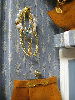 Ya en el lateral derecho, justo encima del candelabro que os mostré en julio -y en un estante más estrecho que los anteriores- se muestra un juego de alta bisutería.